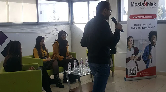 Organisation d’un workshop dont le thème est la présentation du portail https://www.mosta9blek.com/(le premier portail académique dédié aux stages en Tunisie et au Canada) le 11 décembre 2019.